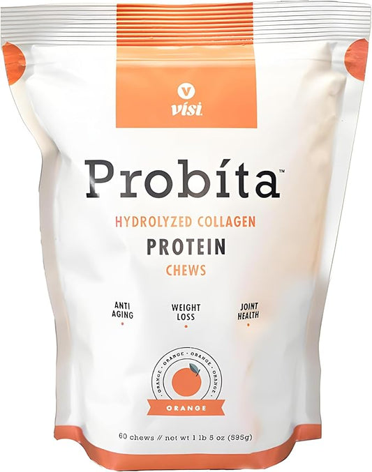VISI Probita Hydrolyzed Collagen Protein Chews - 60 Chews - Non GMO (Orange)