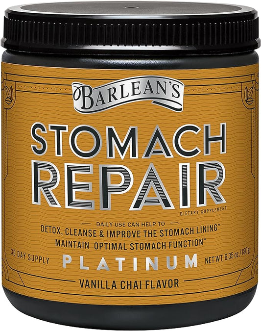 Barlean's Stomach Repair Gut Health Powder Supplement, Fiber and Digestive Support Supplements Blend for Detox and Cleanse, Vanilla Chai Drink Mix, 6.35 oz
