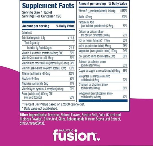 Bariatric Fusion Mixed Berry Complete Chewable Bariatric Multivitamin with Iron for Bariatric Surgery Patients Including Gastric Bypass and Sleeve Gastrectomy - 120 Tablets