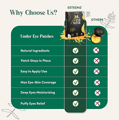 - Firming & Tightening: Reclaim your skin's natural beauty! Our 24 karat gold eye patches for puffy eyes provide a firming and tightening effect, enhancing the delicate skin around your eyes. Rediscover your youthful, radiant, and captivating look with every use