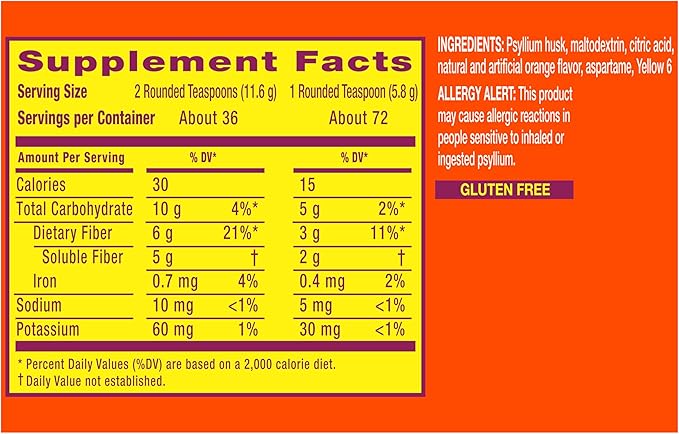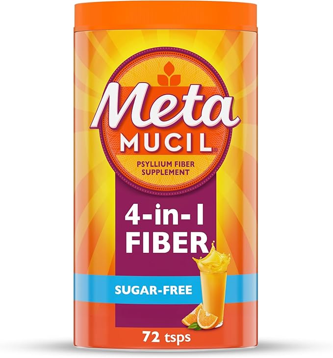 Metamucil 4 in 1 Daily Fiber Supplement Powder, Fiber Powder for Digestive Health and Regularity*, Sugar-Free, Orange, Naturally Sourced Psyllium Fiber, 72 teaspoons