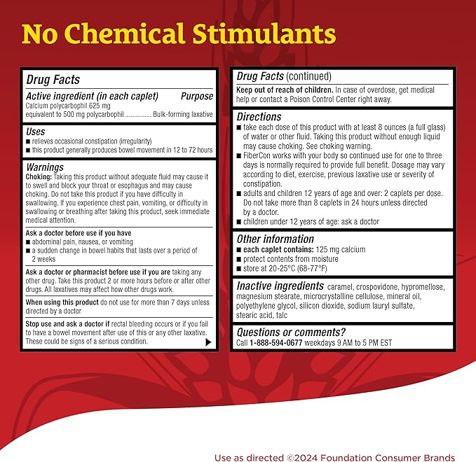- CONSTIPATION RELIEF: FiberCon is the bulk forming fiber therapy that's safe, gentle and is as effective as fiber powders in a convenient caplet to help relieve constipation, so you can feel like yourself again.