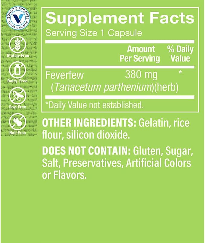 The Vitamin Shoppe Feverfew 380MG, A Traditional Herb, Once Daily (100 Capsules)