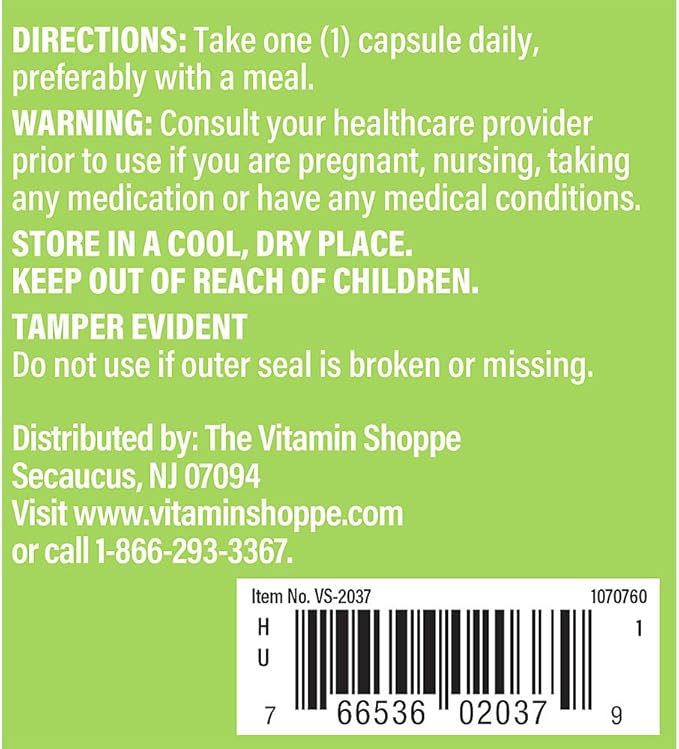 - DIRECTIONS: As a dietary supplement, take one (1) capsule daily, preferably with a meal.