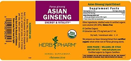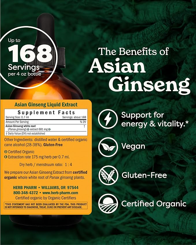 Herb Pharm Asian (Panax) Ginseng Liquid Extract for Energy and Stamina Support - 4 Ounce