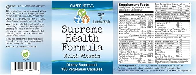 Gary Null Supreme Health Formula 180 Vegi-caps New and Improved