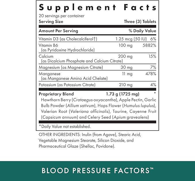 - NOURISHES NERVOUS SYSTEM - Blood Pressure Factors contains nutrients that have been identified as beneficial for supporting blood pressure regulation systems.
