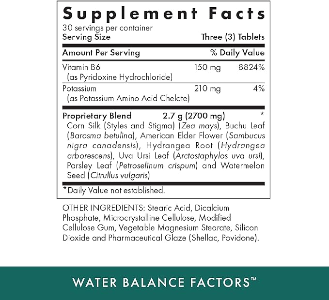 - MAINTAIN WATER BALANCE IN YOUR BODY - Water Balance Factors is a combination of nutrients that help balance fluid levels in the body. The formula also provides nutrients that address the kidneys, which are responsible for maintaining fluid levels.