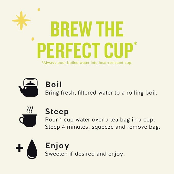 - Your Perfect Cup: Steep the tea bag in hot water for 2 minutes and remove the bag for comforting hot tea. Use the same process over 2 tea bags and serve over ice for a refreshing glass of iced tea.