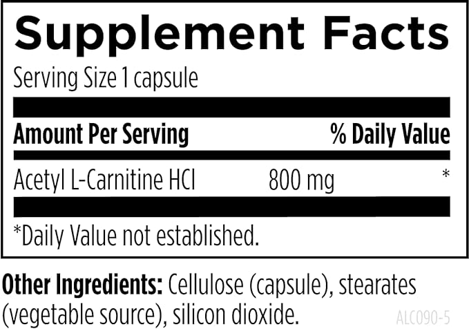 - Support Energy Production - Acetyl-L-Carnitine is the acetylated ester of L-carnitine and plays an important role in the transfer and utilization of long-chain fatty acids, which are used in the production of energy. Each capsule contains 800 mg of Acetyl L-Carnitine. *