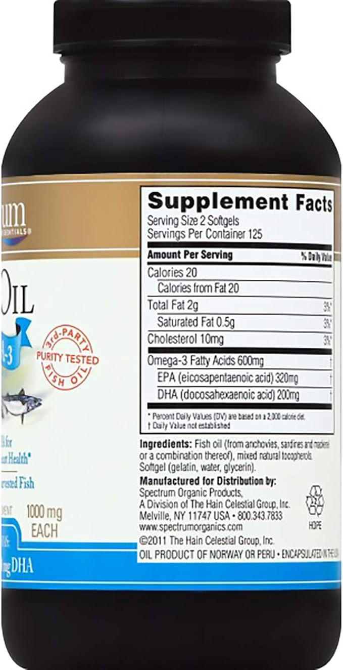 Spectrum Essentials Softgels, Fish Oil Omega-3, 1000 mg, 250 Count