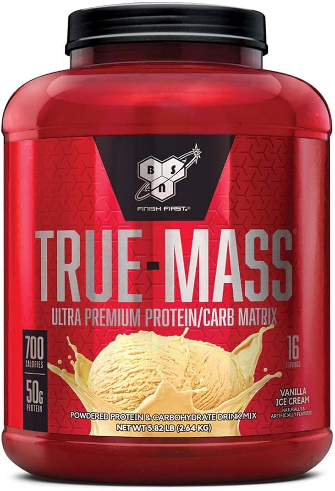 BSN TRUE-MASS Weight Gainer, Muscle Mass Gainer Protein Powder, Vanilla Ice Cream, 5.82 Pound