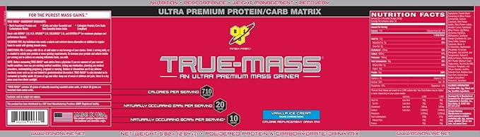 - TRUE-MASS: 700 CALORIES PER SERVING – the extra nutrition your body needs to build mass in an extreme training program.