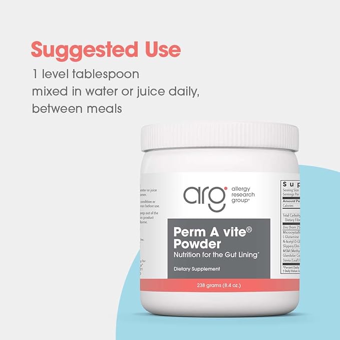 - Flavor : Allergy Research Group Perm A vite Powder - Gut Health for Men & Women, Gut Assist, Gut Support, Gut Healing, L-Glutamine, Slippery Elm - 8.4 Oz Allergy Research Group Perm A vite Powder - Gut Health for Men & Women, Gut Assist, Gut Support, Gut Healing, L-Glutamine, Slippery Elm - 8.4 Oz