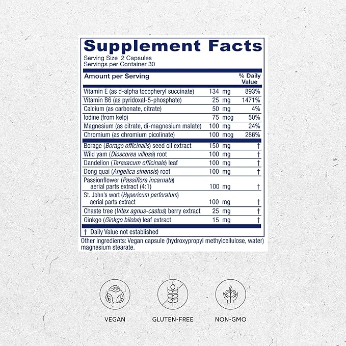 - Vitamin E, Vitamin B6, Magnesium and Calcium are all nutrients indicated in related research, to support premenstrual symptom relief