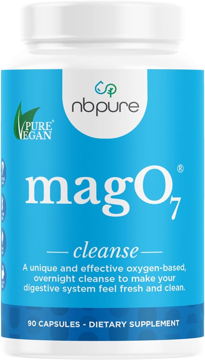 nbpure MagO7 - Natural Colon Cleanse & Detox - Occasional Constipation Relief, Stool Softening, & Bloating Support for Men & Women - Ozonated Magnesium Oxide, 90 Capsules