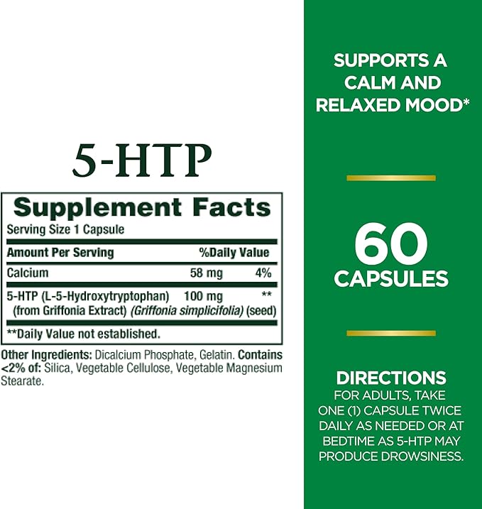 Nature's Bounty 5-HTP Pills and Dietary Supplement, Supports a Calm and Relaxed Mood, 100mg, 60 Capsules