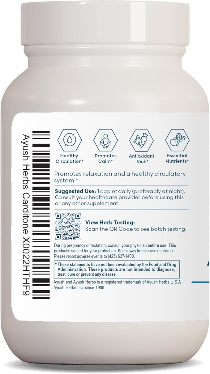 Ayush Herbs Carditone - Natural Heart Health Supplement for Women & Men, BP Formula, Holistic Heart Support with Rauwolfia, Arjuna, Calcium, and Magnesium - 60 Vegetarian Caplets (1 Count)
