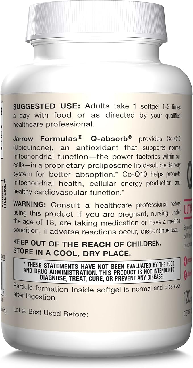 - Daily Wellness Formula: One 120 count bottle of Jarrow Formulas Q-absorb Co-Q10 supplements for 120-day supply