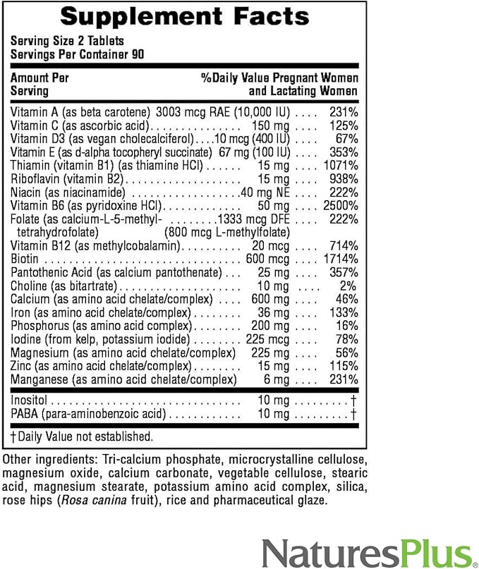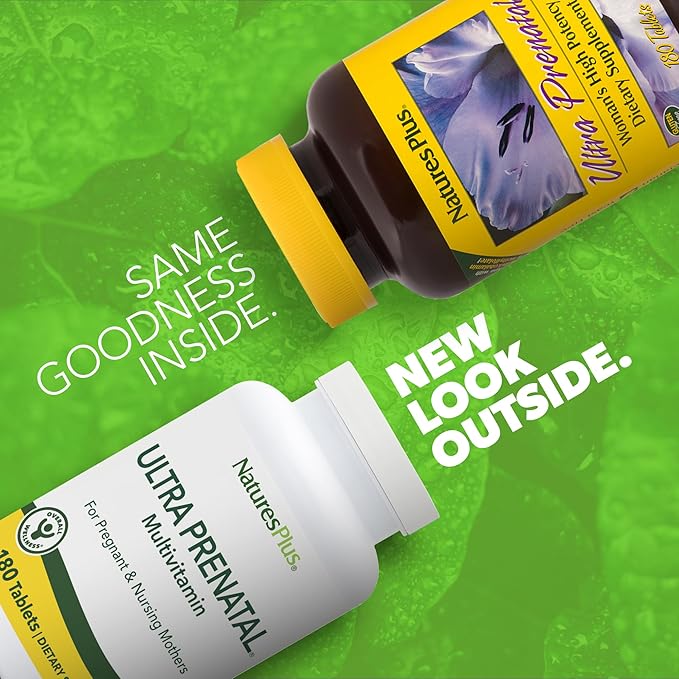 Natures Plus Ultra Prenatal Multivitamin - 800 mcg Folate, 180 Vegetarian Tablets - Prenatal Supplement with Iron, Iodine, Calcium & B-Complex Vitamins - Gluten-Free - 90 Servings