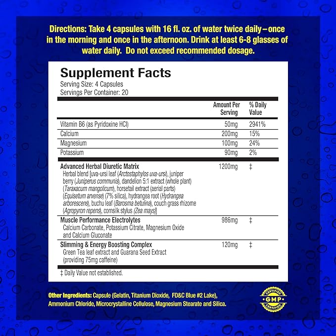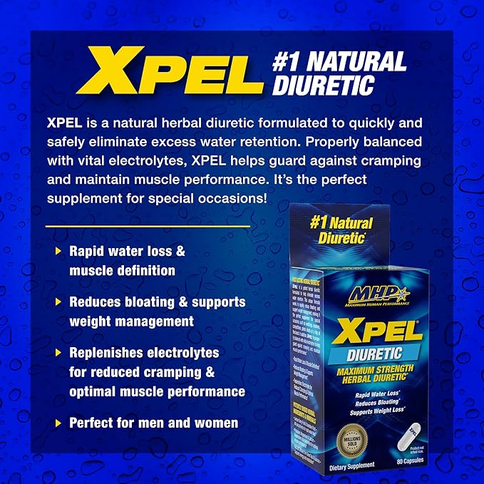 MHP Xpel Maximum Strength Diuretic Water Pills, for Water Retention Relief, Weight loss Support, with Vitamin B-6 Potassium Dandelion Root, 80 Capsules