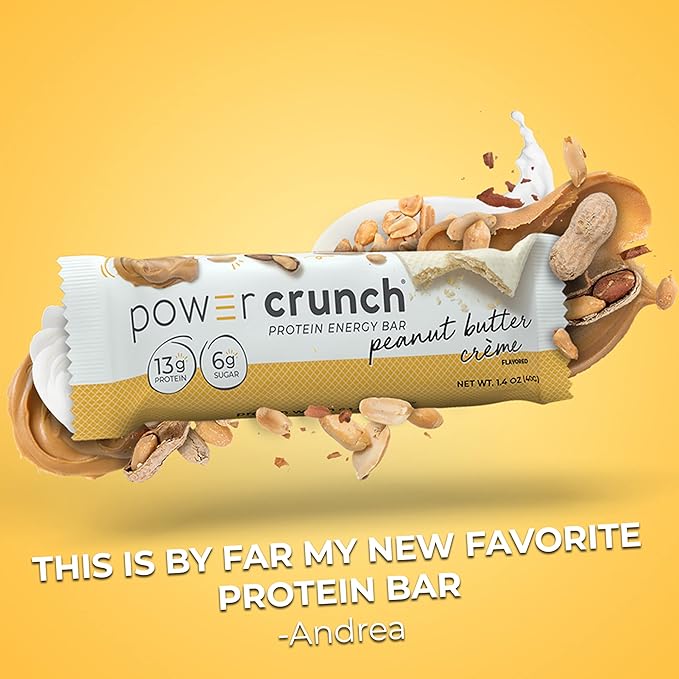 - DELICIOUS TASTING WHEY PROTEIN BARS: Power Crunch Bars are the perfect protein snacks. With 13 grams of protein and only 6 grams of sugar, these Peanut Butter Crème energy bars are the ideal snacks. Great for Back to School