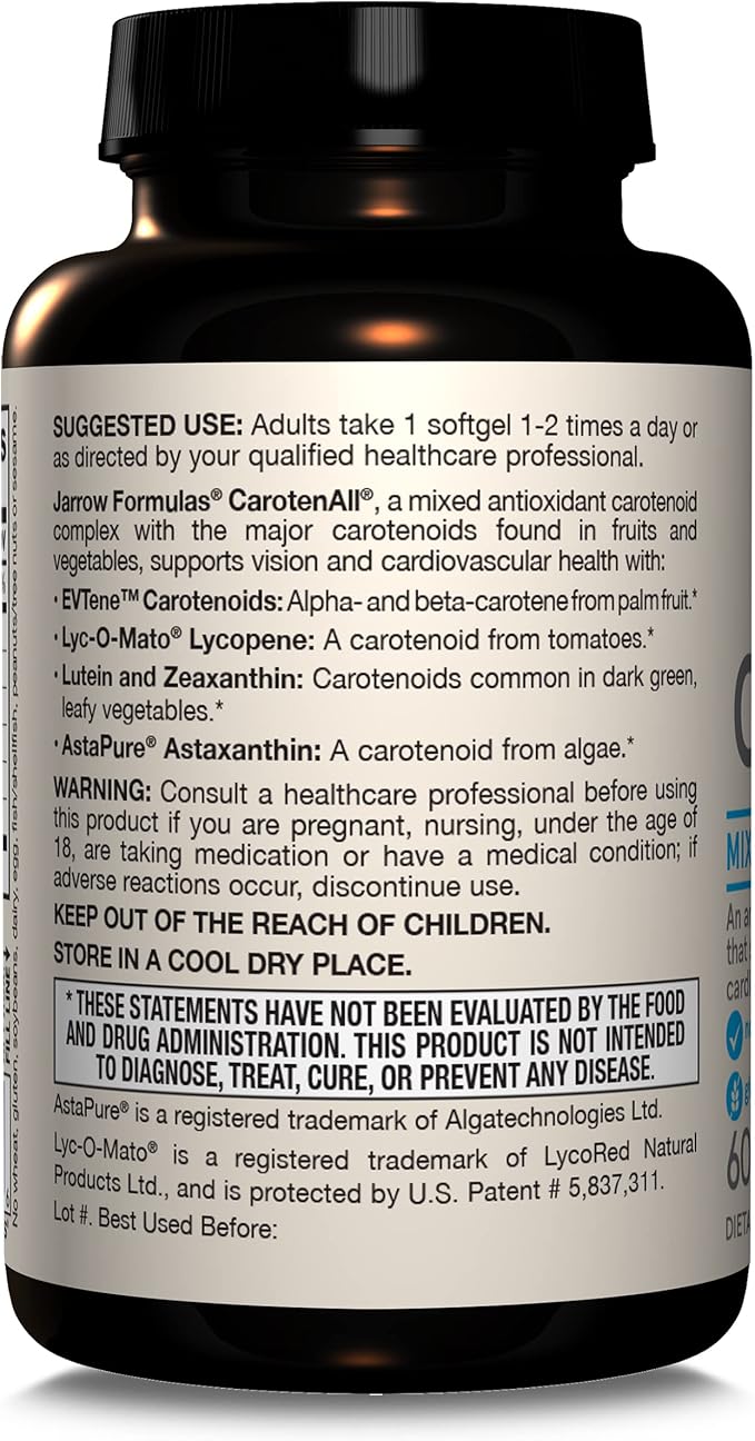 Jarrow Formulas CarotenAll, Dietary Supplement, Antioxidant Support for Vision and Cardiovascular Health, 60 Softgels, Up to a 60 Day Supply
