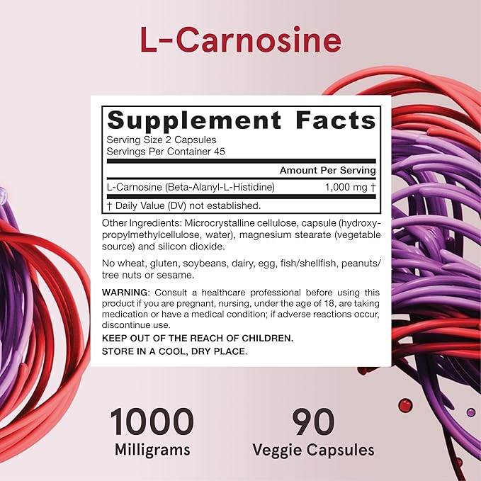 - Amino Acid Supplement: One 90 count bottle of Jarrow Formulas L-Carnosine Dipeptide Antioxidant for mitochondrial health(1), provides 45 servings