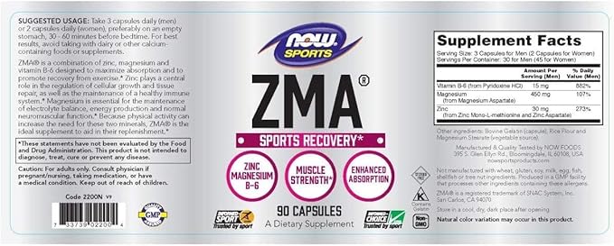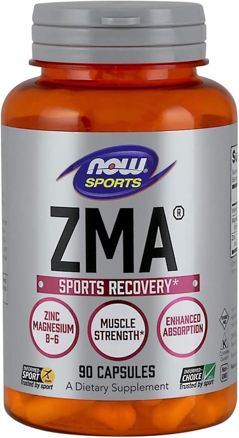 NOW Foods Sports Nutrition, ZMA (Zinc, Magnesium and Vitamin B-6), Enhanced Absorption, Sports Recovery*, 90 Capsules