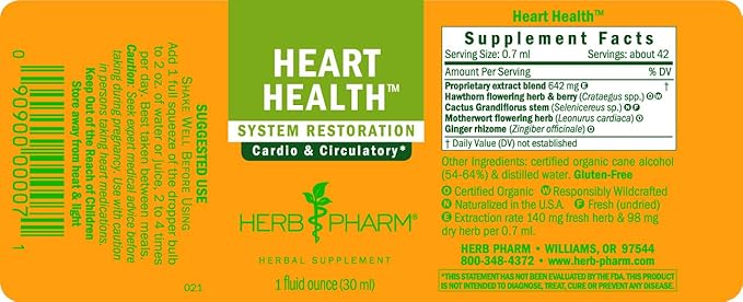 Herb Pharm Heart Health Liquid Herbal Formula with Hawthorn for Cardiovascular System Support - 1 Ounce (FCACT01)