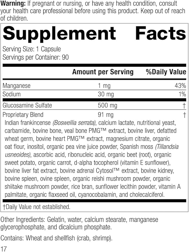 Standard Process Inc. Glucosamine Synergy - Whole Food RNA Supplement and Joint Support with Cyanocobalamin, Cholecalciferol, Shiitake, Manganese, Rice Bran, Organic Carrots - 90 Capsules