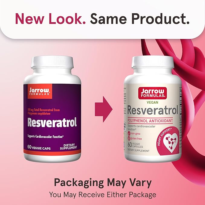 Jarrow Formulas Resveratrol 100 mg, Dietary Supplement, Antioxidant Support for Cardiovascular Function, 60 Veggie Capsules, 60 Day Supply