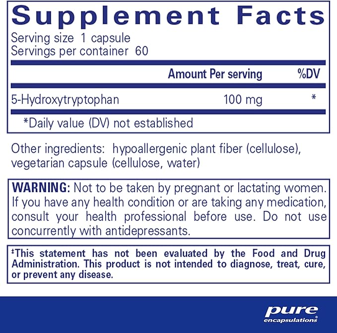 Pure Encapsulations 5-HTP 100 mg - Brain Health, Sleep Regulation & Appetite Support* - 5-Hydroxytryptophan - Gluten Free & Non-GMO - 60 Capsules