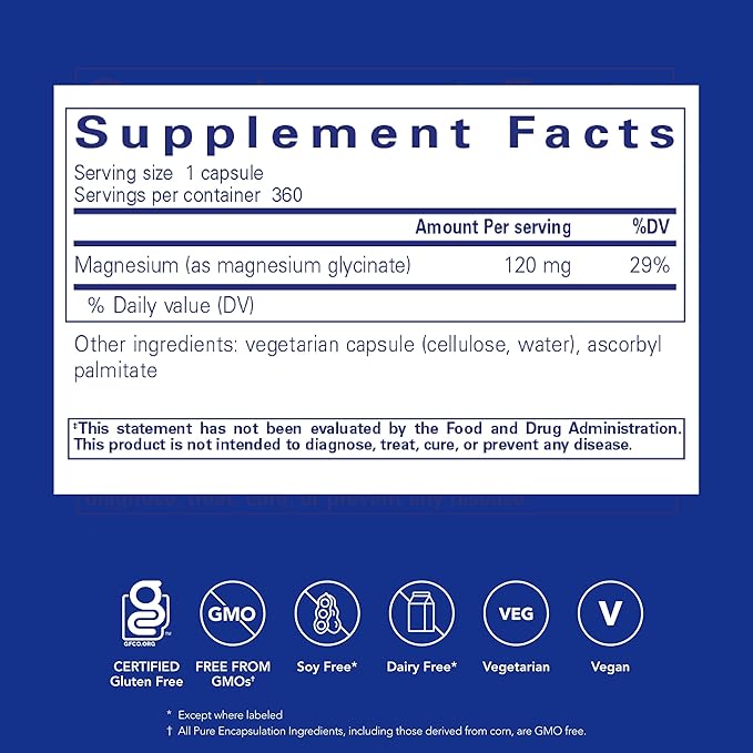 Pure Encapsulations Magnesium (Glycinate) - Supplement to Support Stress Relief, Sleep, Heart Health, Nerves, Muscles, and Metabolism* - with Magnesium Glycinate - 360 Capsules