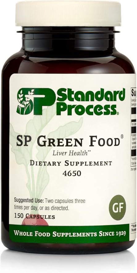 Standard Process SP Green Food - Whole Food Metabolism, Cholesterol, Toxin, and Liver Support with Alfalfa, Buckwheat, Barley, Brussels Sprouts, and Kale - Vegetarian, Gluten Free - 150 Capsules