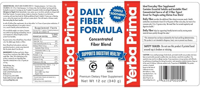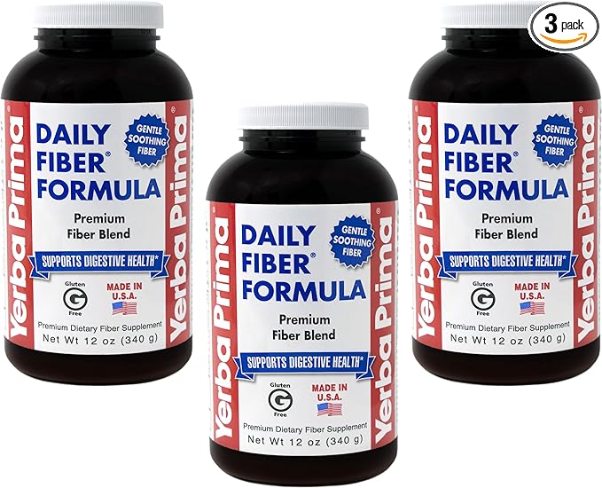 Yerba Prima Daily Fiber Formula 12 oz (3 Pack) - Soluble & Insoluble Dietary Fiber Supplement - Colon Health - Vegan, Non-GMO, Gluten-Free