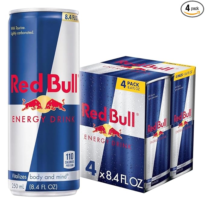 Red Bull Energy Drink with 80mg Caffeine plus Taurine & B Vitamins, 8.4 Fl Oz, Pack of 4 Cans