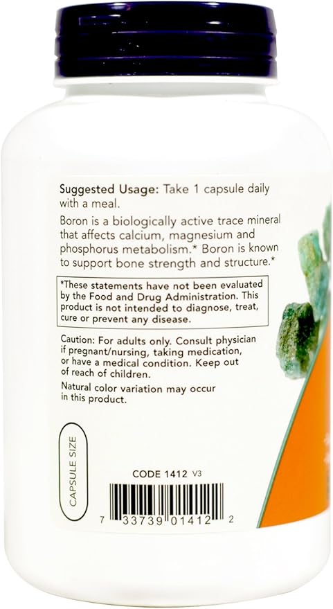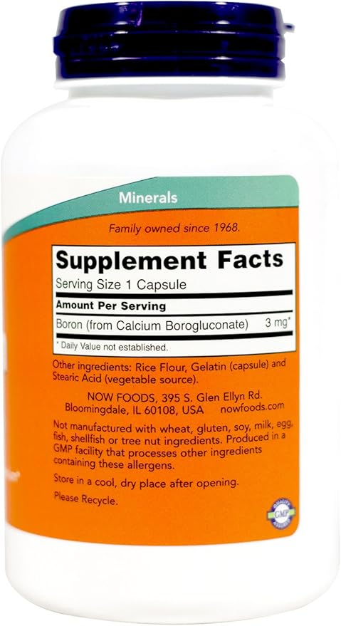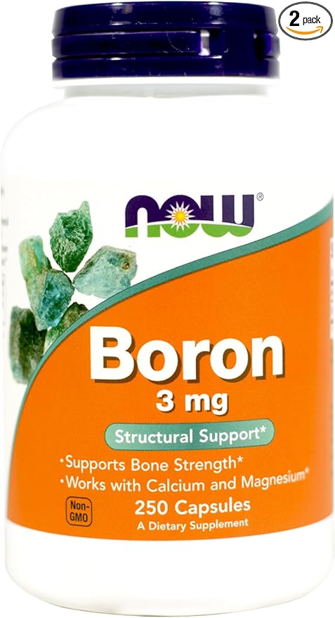 NOW Boron, 3 mg, 250 Capsules (Pack of 2)