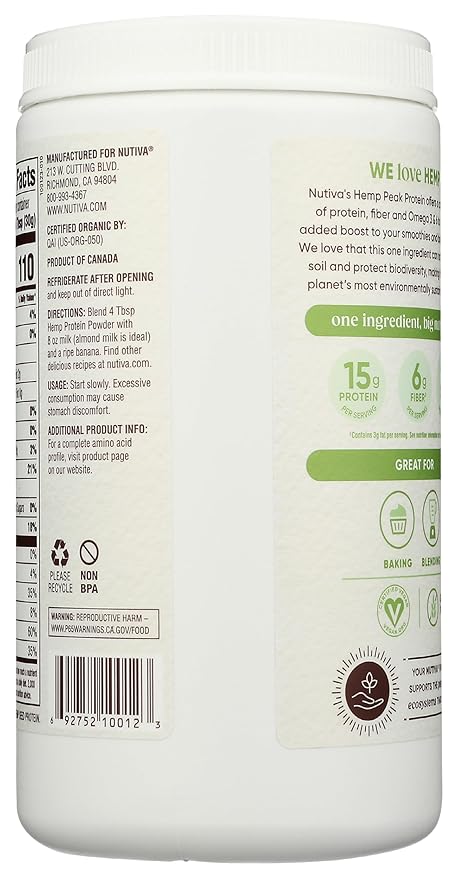 - Nutiva Organic, Cold-Processed Hemp Seed Protein is packaged in safe, convenient, BPA-free packaging.