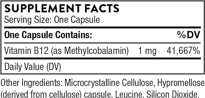 THORNE Vitamin B12 - as Methylcobalamin - Supports Heart & Nerve Health, Blood Cell Function, Healthy Sleep & Methylation* - Gluten, Dairy & Soy-Free - 60 Capsules