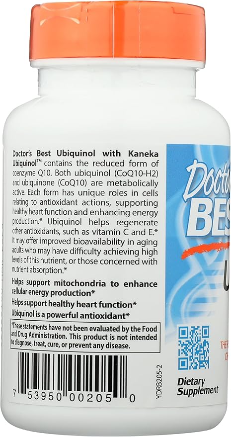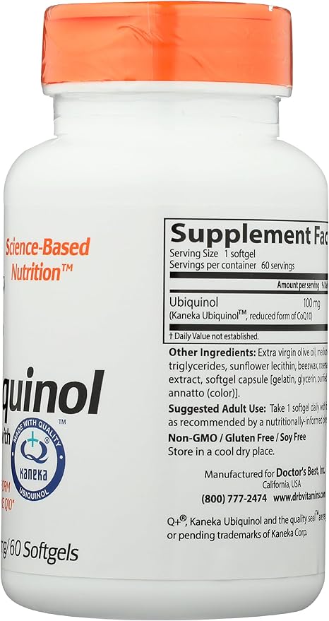Doctor's Best Ubiquinol with Kaneka QH, Healthy Heart, Enhances Cellular Energy, Antioxidant, Non-GMO, Gluten Free, Soy Free, 100 Mg