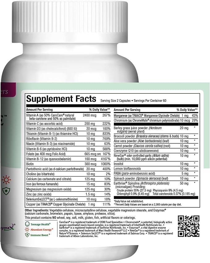 - TEEN GIRL MULTIVITAMIN - Our specially curated women's multivitamin is designed for girls 12 to 17 and into early adulthood. Contains 32 essential nutrients, teen vitamins and minerals to support with the rapid body and brain growth that occurs during adolescence.