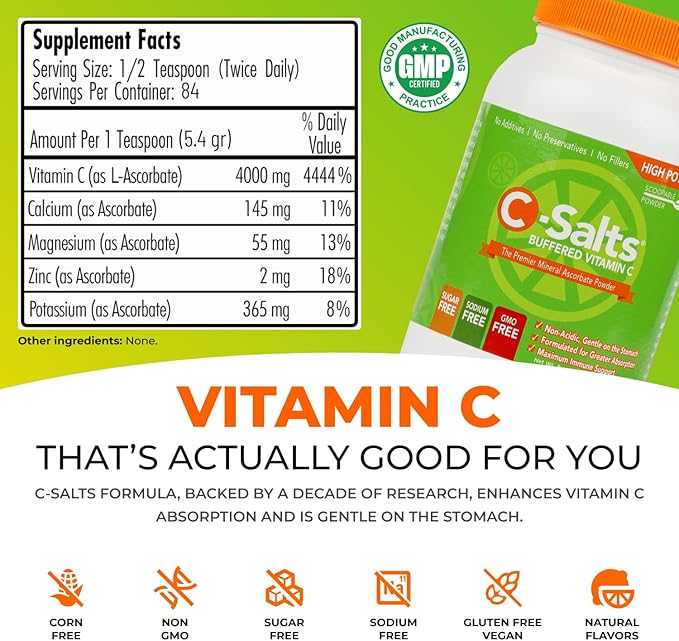 - ππππ-πππ¦π’π₯π£π§ππ’π‘ ππ’π₯π π¨ππ: Backed by decades of research, C-Salts fast-acting Buffered Vitamin C Powder is designed for maximum absorption. It works faster and more efficiently than pills or gummies, providing enhanced immune support and overall wellness exactly when you need it most.