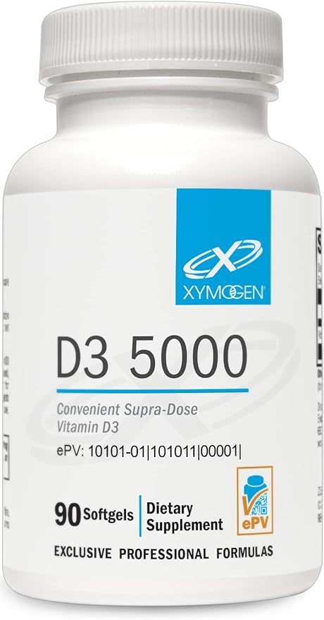 XYMOGEN D3 5000 - Bioavailable Vitamin D3 5000 IU (125 mcg) - High Potency Vitamin D Supplement to Support Immune Health, Bone + Heart Health (90 Gelatin Softgels)
