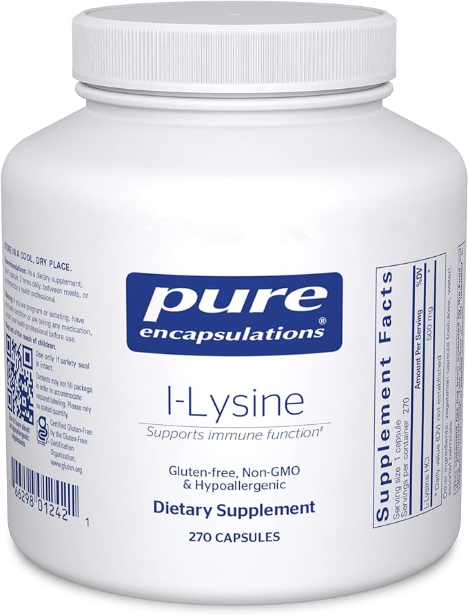 Pure Encapsulations L-Lysine - Essential Amino Acid Supplement for Immune Support & Gum, Lip Health* - with L-Lysine HCl - 270 Capsules