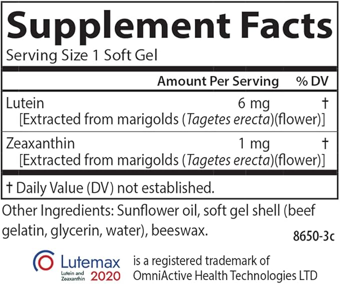 - Each soft gel contains 6 mg of lutein