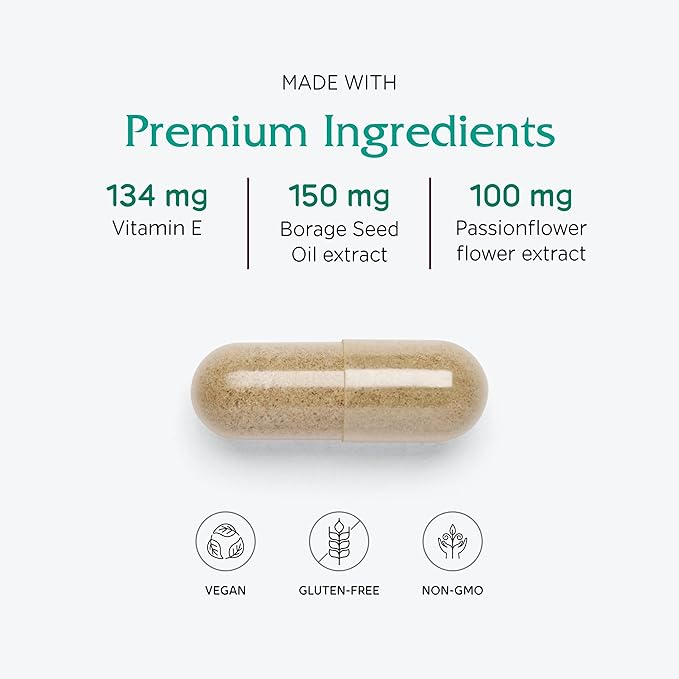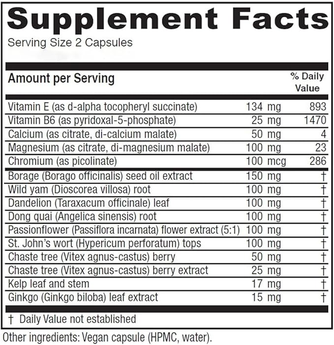 - Vitamin E, Vitamin B6, Magnesium and Calcium are all nutrients indicated in related research, to support premenstrual symptom relief