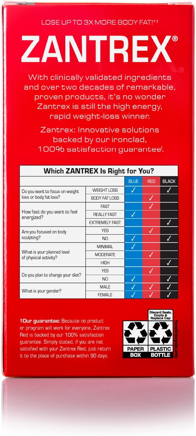 - BURN FAT + ACHIEVE YOUR GOALS: Zantrex Red includes a natural combination of polyphenols to support healthy weight management. It can help you lose weight, burn fat, and live the life you want. This weight-loss pill helps break down fat for a reliable thermogenic that gets results.*
