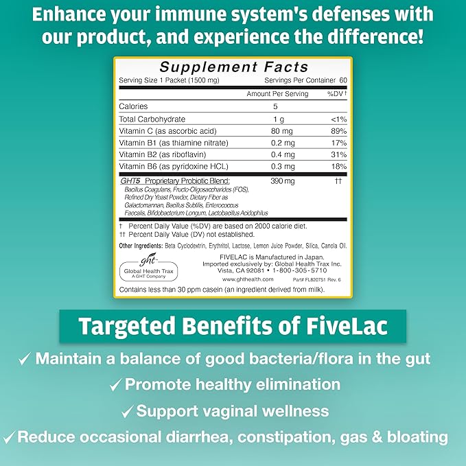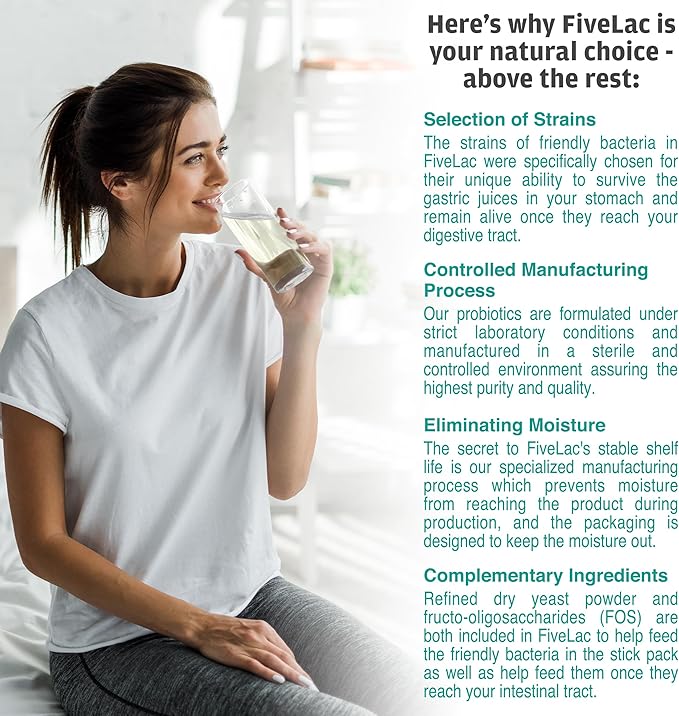 - BOWEL ELIMINATION: Fivelac encourages regular bowel movements and supports overall gut health w/ carefully selected strains