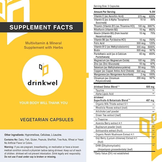 drinkwel for Liver Support & Detox Multivitamin, 90 Count (Pack of 1)